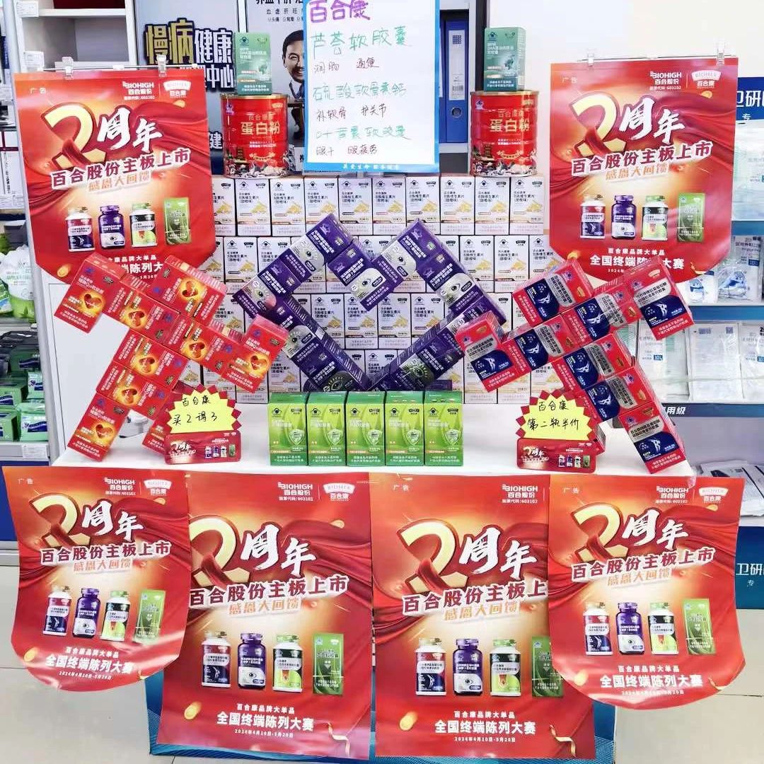 本次陳列大賽依托百合股份的黃金大單品系列,包括百合康牌氨基葡萄糖硫酸軟骨素鈣膠囊、鴻洋神牌藍莓葉黃素β-胡蘿卜素軟膠囊、百合康牌蘆薈軟膠囊、百合康牌苦瓜西洋參鉻軟膠囊,通過創(chuàng)意陳列布局,優(yōu)化產(chǎn)品賣點展示效果,喚醒顧客的購買欲望,實現(xiàn)顧客滿意度與銷售額的雙重飛躍。